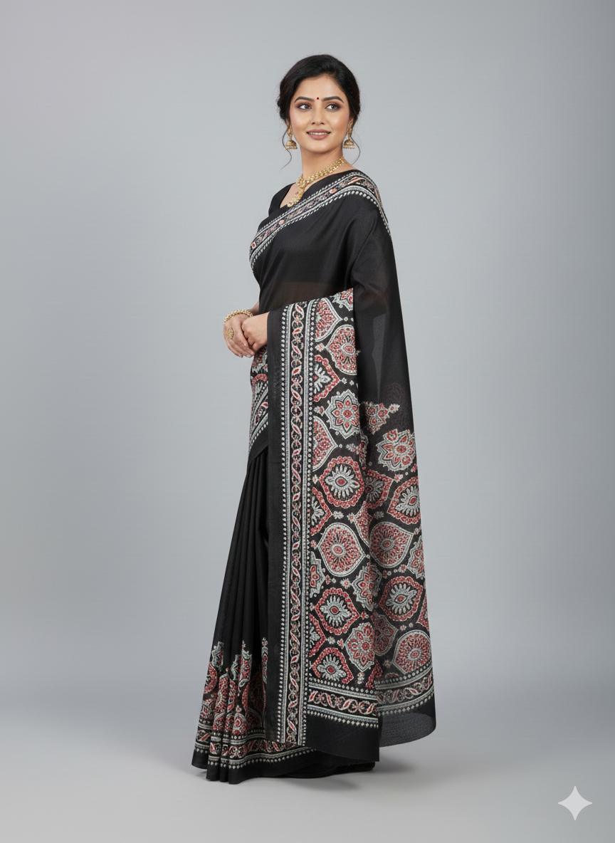 • Saree Crep- Ajrakh